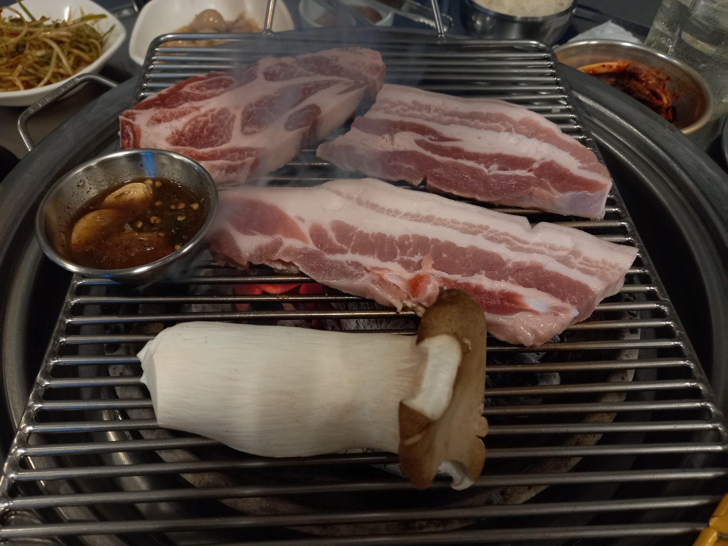 영롱한 모습으로 익은 삼겹살을 영접하는데에 나 자신이 혈안이 되어있었다.