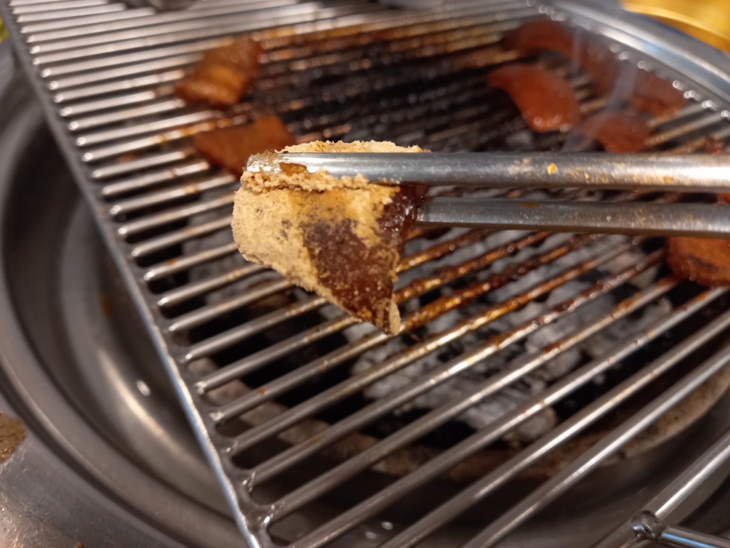 숯불 석쇠 위에 놓여진 간장소스와 함께 먹으면 금상첨화가 따로 없다.